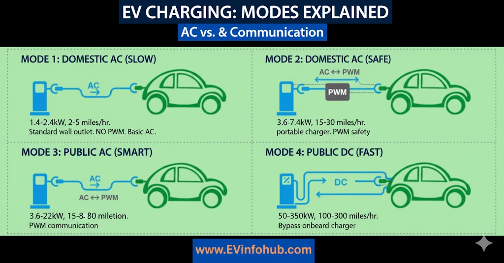Charging Levels: Level 1 (120V) provides approximately 5 miles of range per hour, Level 2 (240V) offers around 25 miles of range per hour, and Level 3 (DC Fast Charging) can deliver between 100 to 200 miles of range in just half an hour.